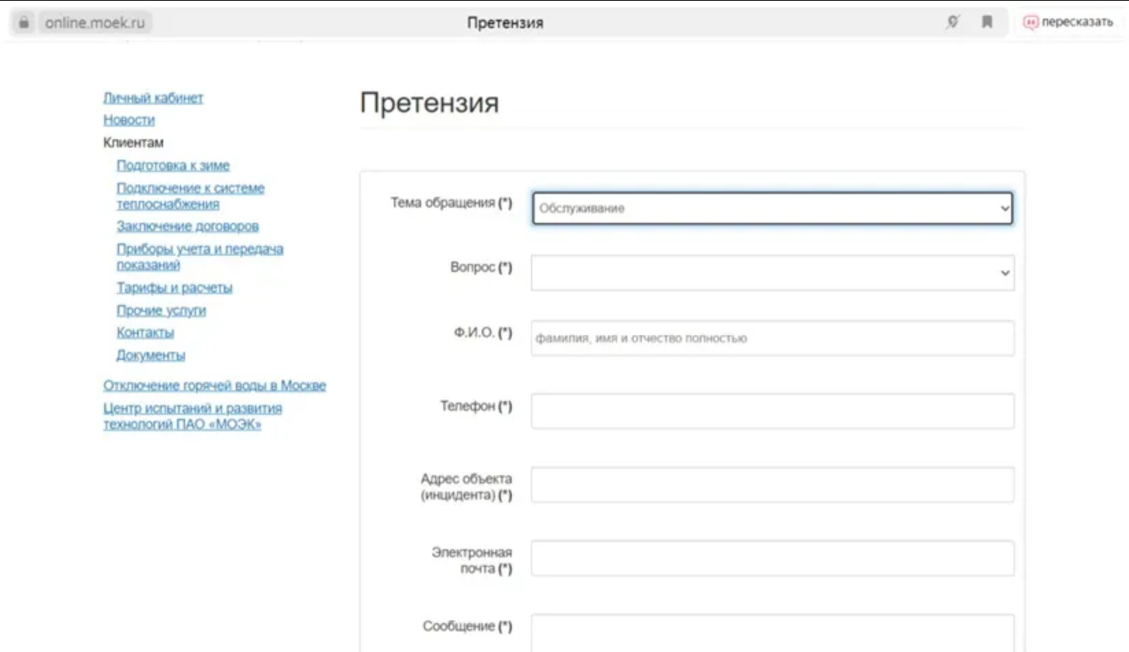 Пункт четвертый: Подача обращения в МОЭК